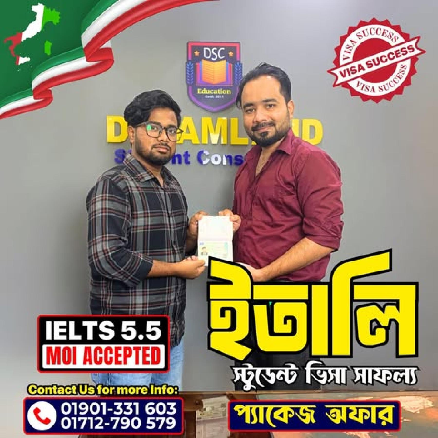 বিদেশে উচ্চশিক্ষার জন্য 𝗦𝗰𝗵𝗲𝗻𝗴𝗲𝗻 ভুক্ত দেশ 𝗜𝗧𝗔𝗟𝗬 নিয়ে এলো 𝗦𝗖𝗛𝗢𝗟𝗔𝗥𝗦𝗛𝗜𝗣 সহ পড়াশোনার সুবর্ণ সুযোগ। মানসম্পন্ন শিক্ষার কারণে 𝗜𝗧𝗔𝗟𝗬-র শিক্ষা ব্যবস্থা আন্তর্জাতিক শিক্ষার্থীদের জন্য অনুকূল। আপনারা যারা 𝗜𝗘𝗟𝗧𝗦 স্কোর 𝟱.𝟱 ও 𝗠𝗢𝗜 দিয়ে ইউরোপ-এ পড়াশুনা করতে চাচ্ছেন তাদের জন্য 𝗜𝗧𝗔𝗟𝗬-ই হতে পারে একটি সঠিক গন্তব্যস্থল। ![]()